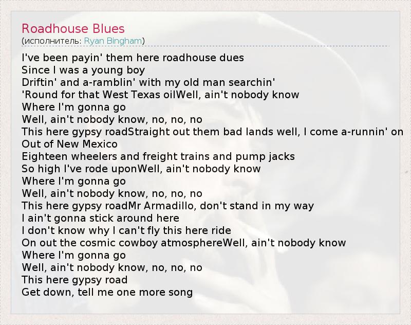 А как ты думаешь, о чем песня "Roadhouse Blues" ?