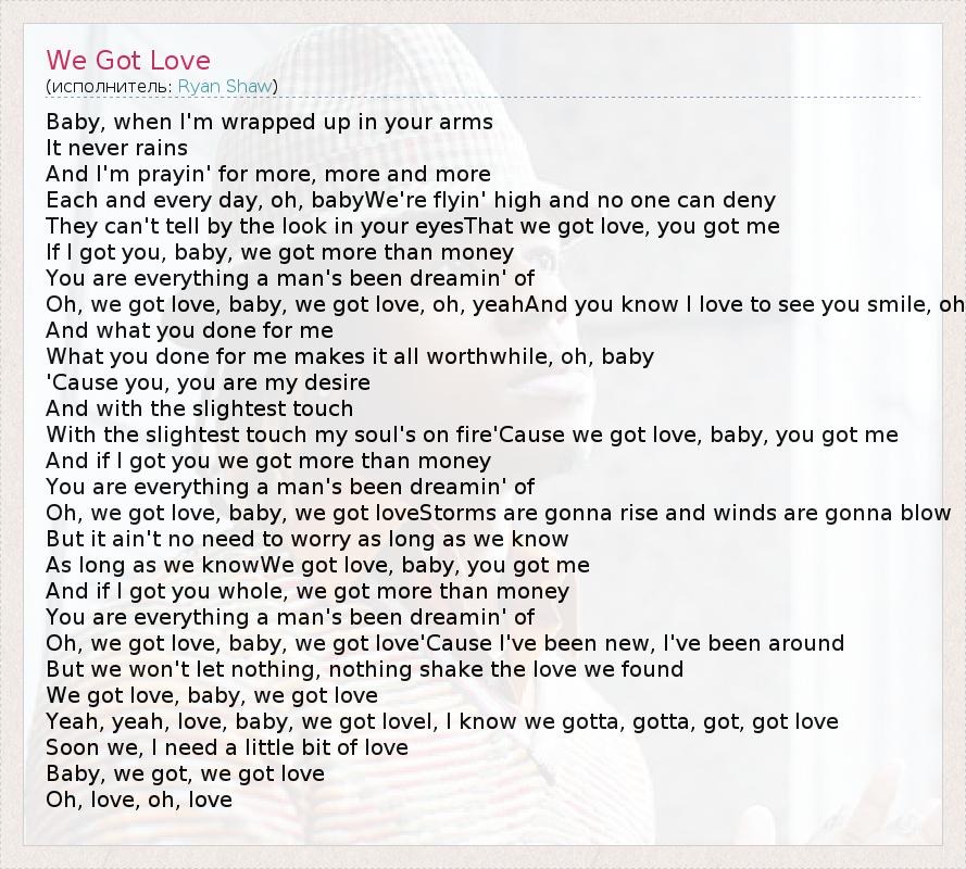Oh, we got love, baby, we got love'Cause I've been new, I've been around
