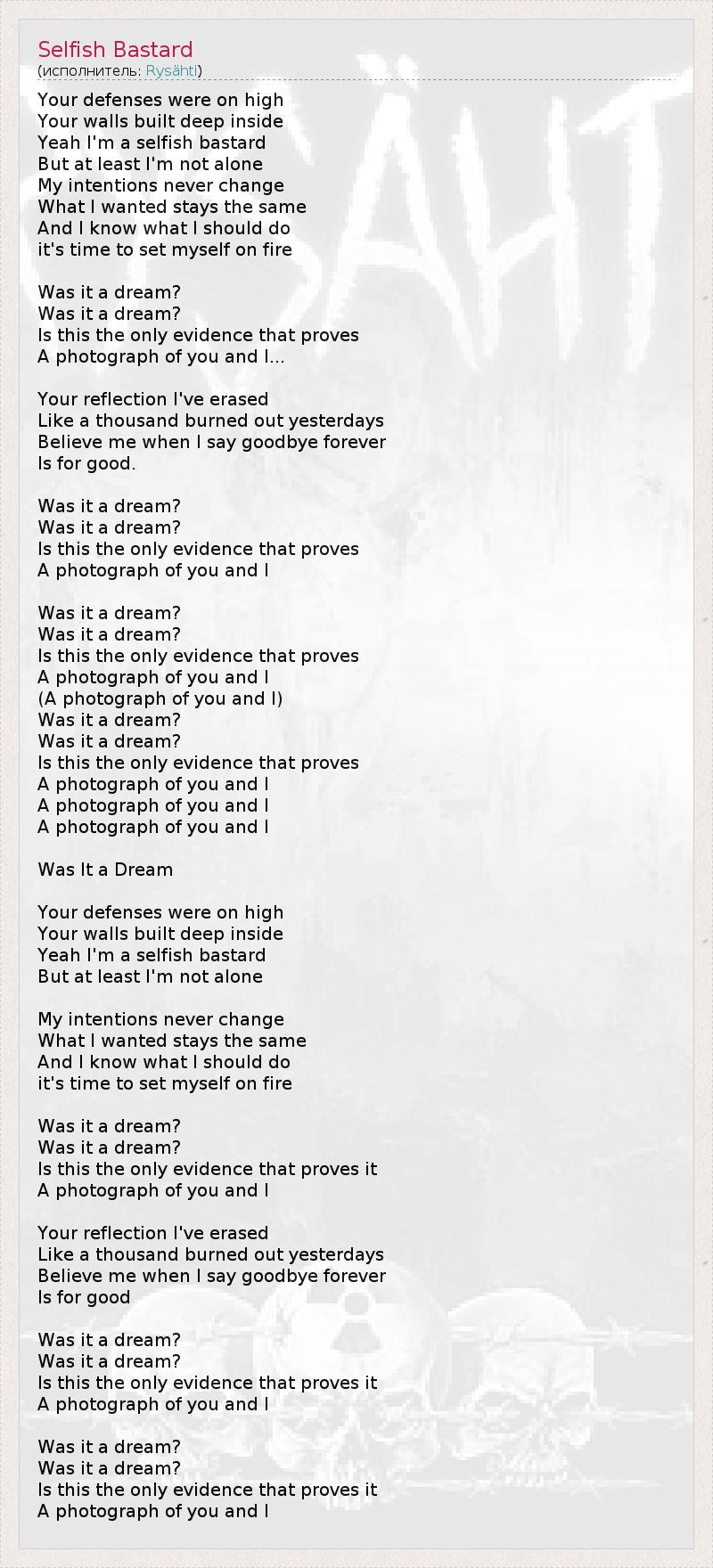 А как ты думаешь, о чем песня "Selfish Bastard" ?