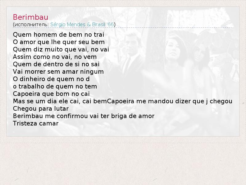 А как ты думаешь, о чем песня "Berimbau" ?