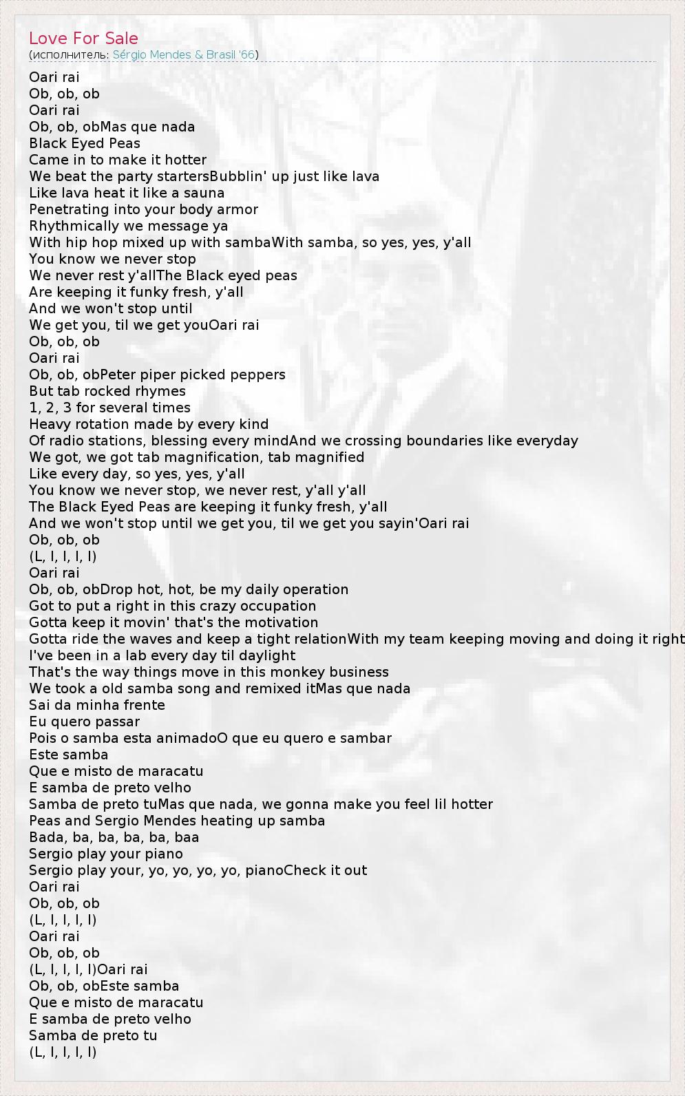 А как ты думаешь, о чем песня "Love For Sale" ?