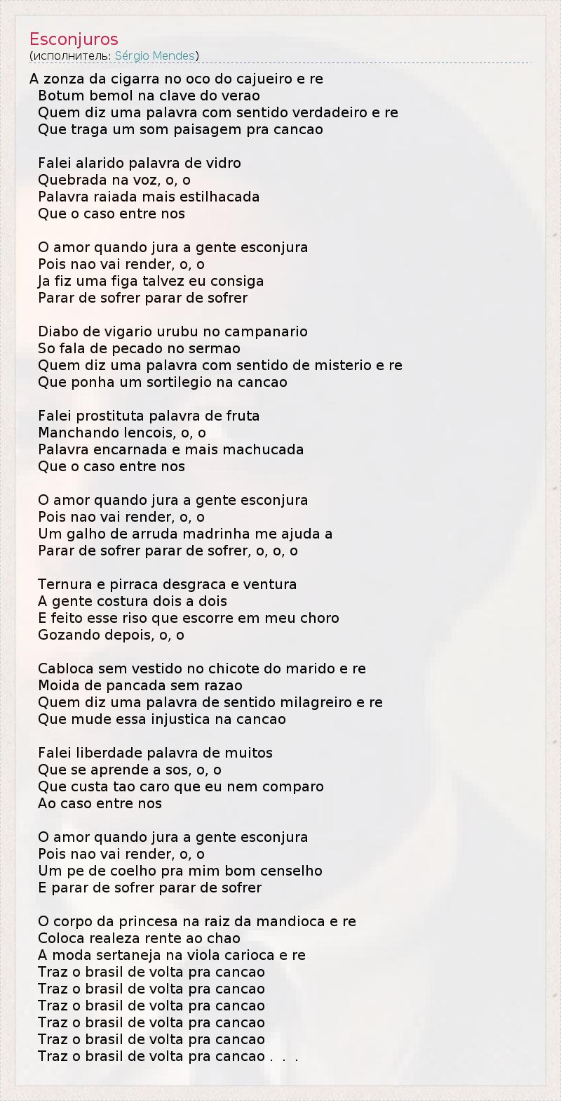 А как ты думаешь, о чем песня "Esconjuros" ?