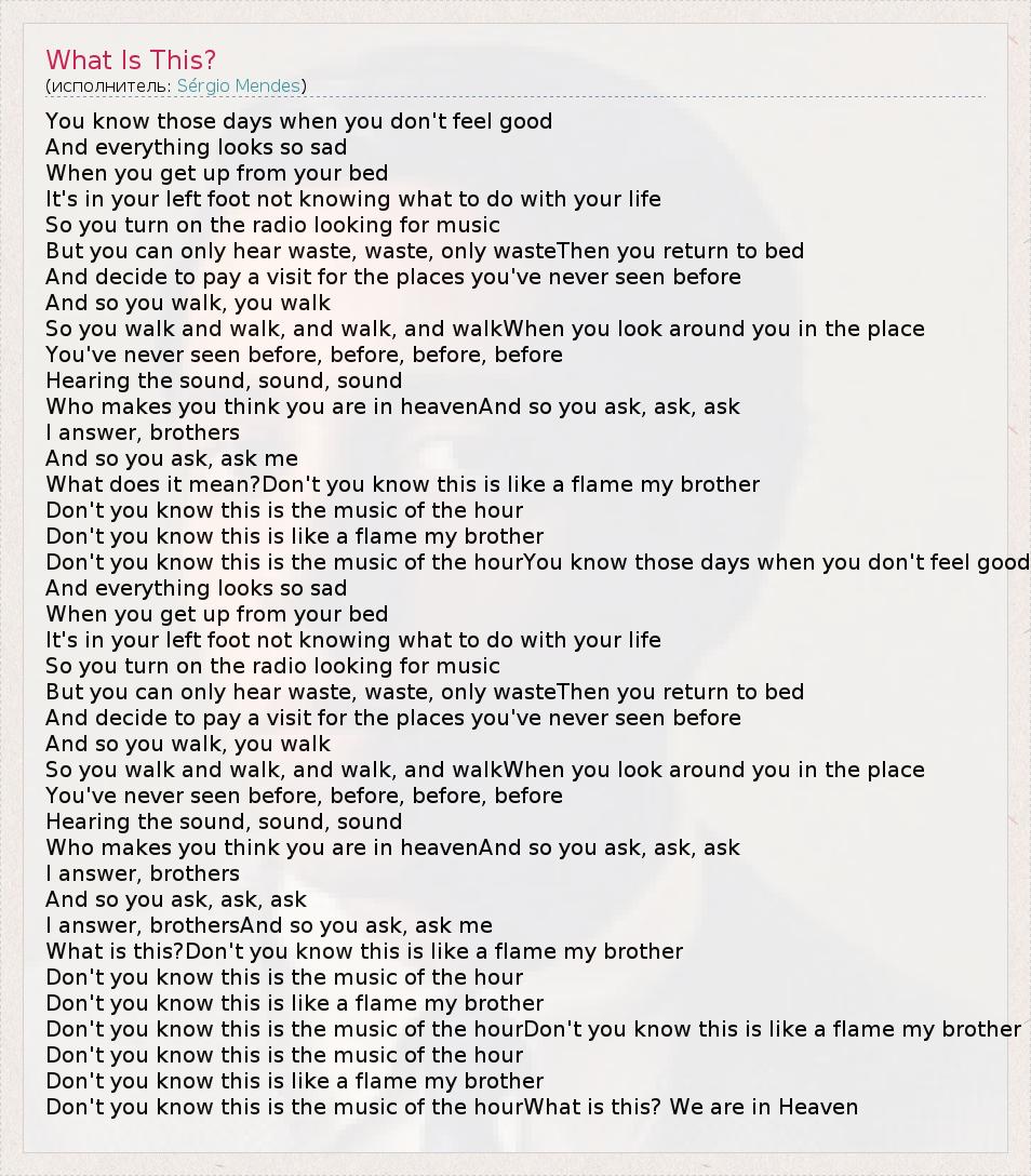 Это интересно:Он родился в бразильском городке Нитерой (Niteroi), в семье врача. Еще совсем мальчишкой начал заниматься музыкой в местной консерватории и мечтал стать профессиональным пианистом. Но стоило семье переехать в столицу Рио-де Жанейро, как 15-летний Серхио бросил занятия по классической музыке, променяв увертюры и сюиты на зажигательные ритмы тогда еще совсем нового музыкального направления... продолжение
