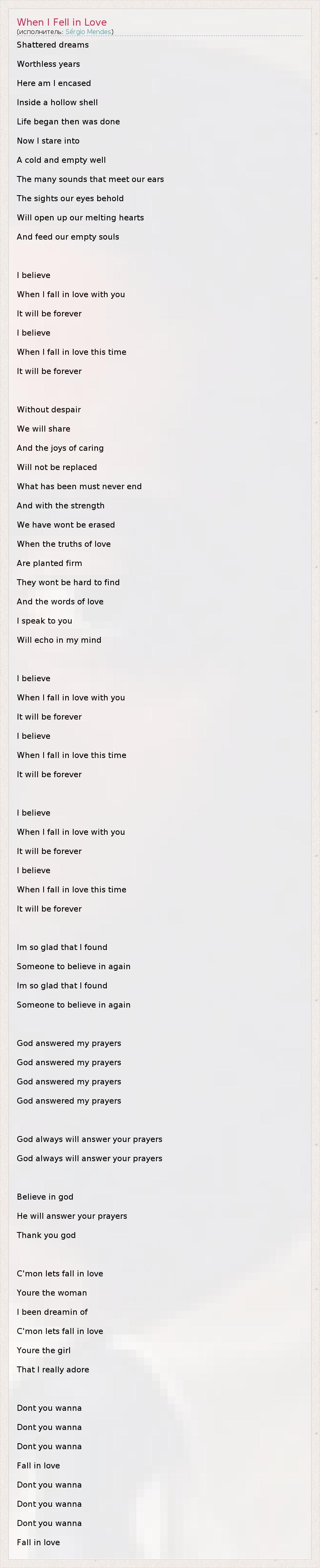А как ты думаешь, о чем песня "When I Fell in Love" ?