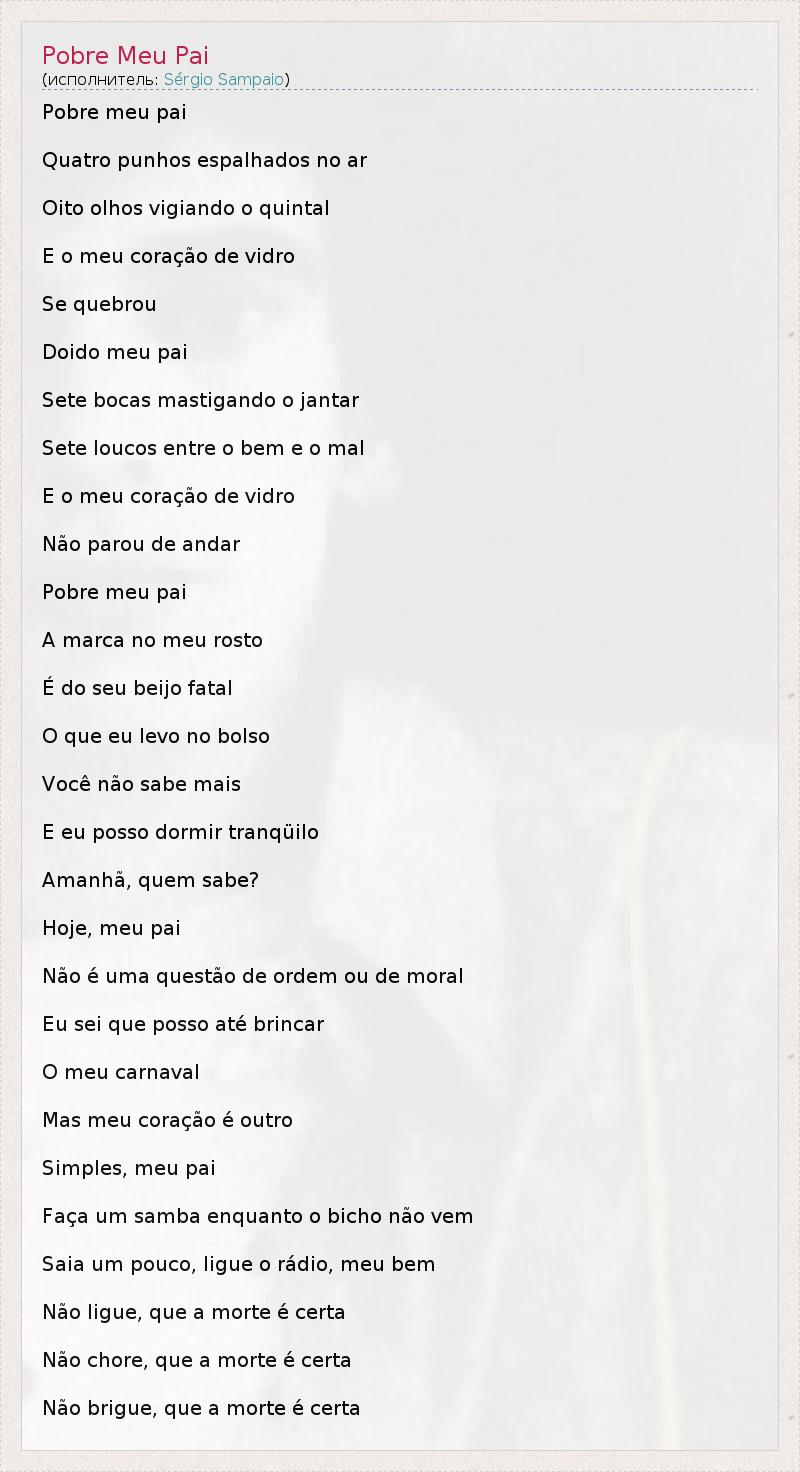 А как ты думаешь, о чем песня "Pobre Meu Pai" ?