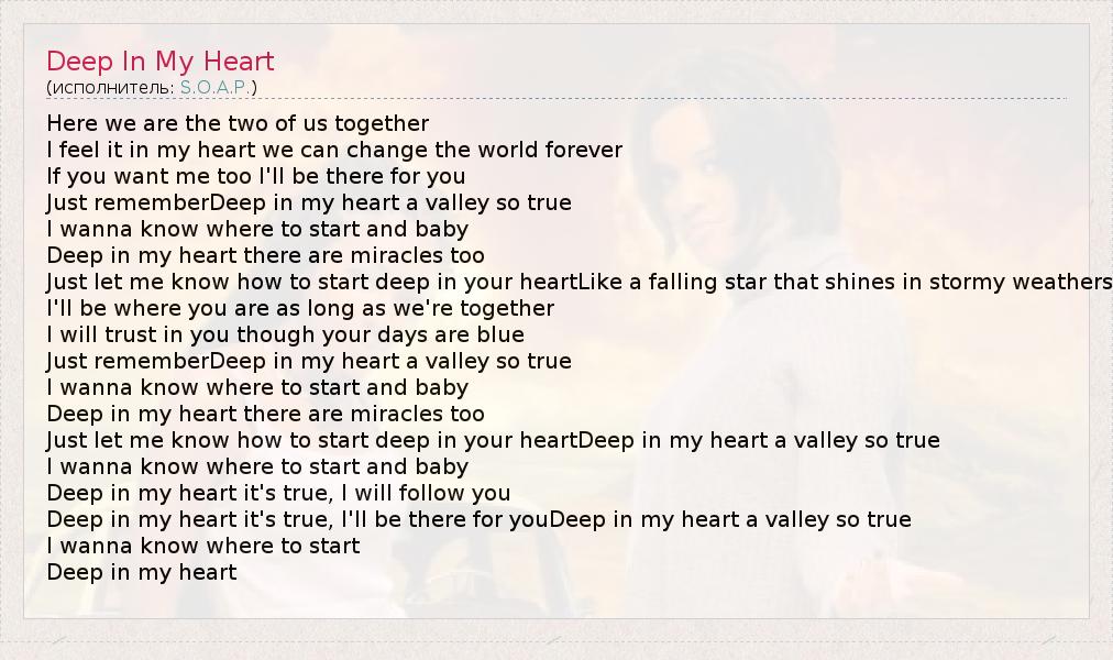 А как ты думаешь, о чем песня "Deep In My Heart" ?
