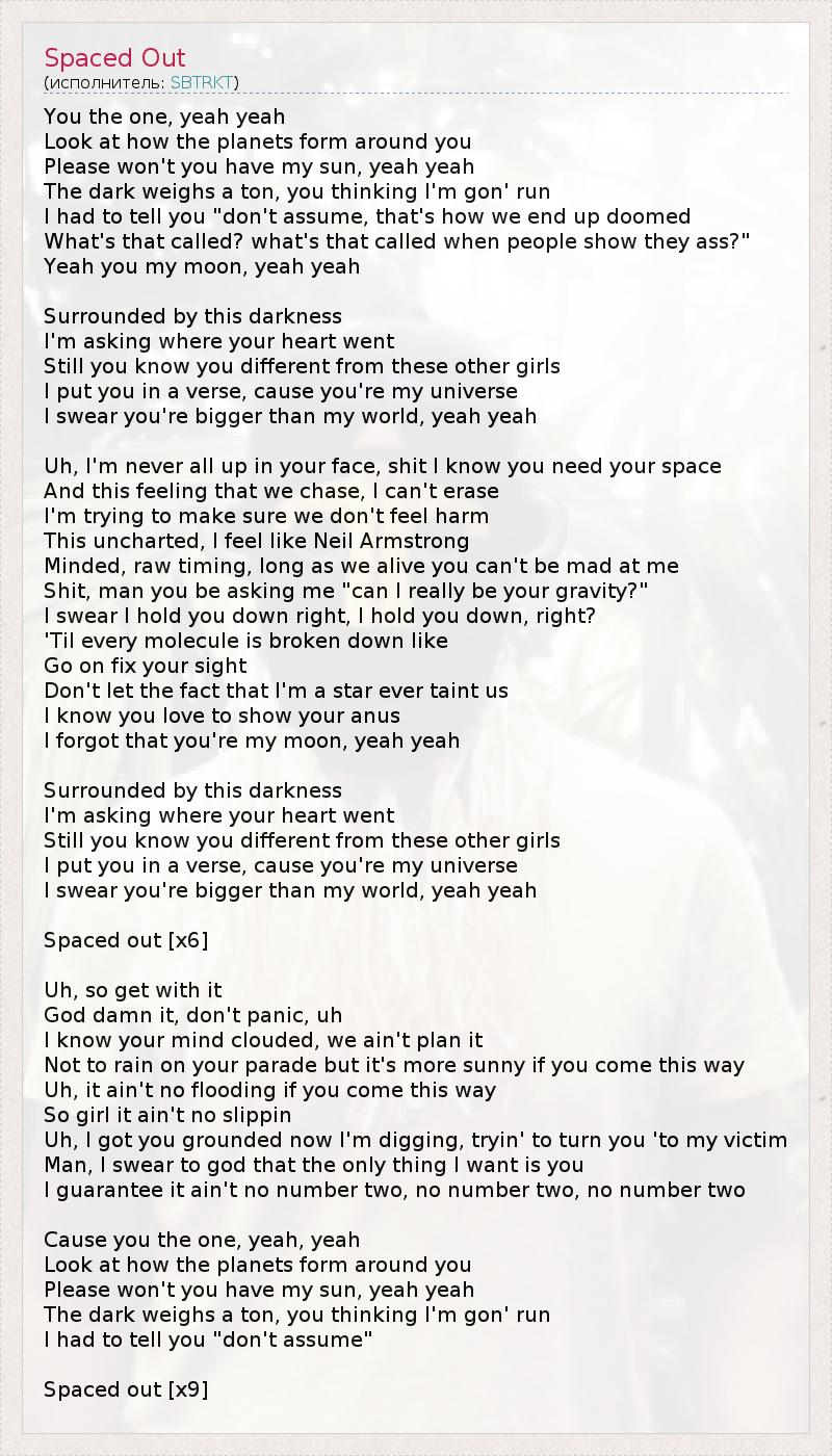 А как ты думаешь, о чем песня "Spaced Out" ?