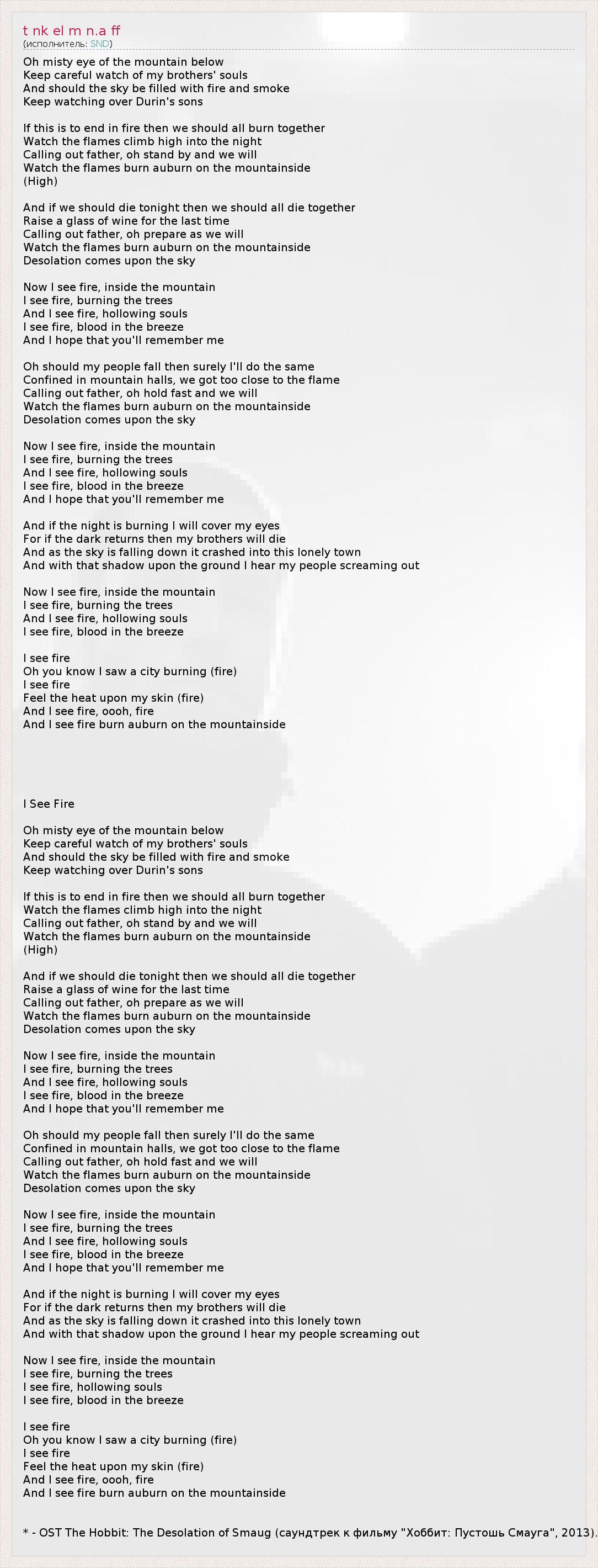 * - OST The Hobbit: The Desolation of Smaug (саундтрек к фильму "Хоббит: Пустошь Смауга", 2013).
