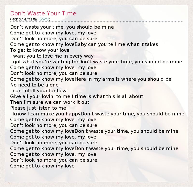 ГлавнаяИсполнителиSWVDon't Waste Your Time