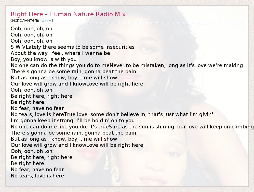 ГлавнаяИсполнителиSWVRight Here - Human Nature Radio Mix