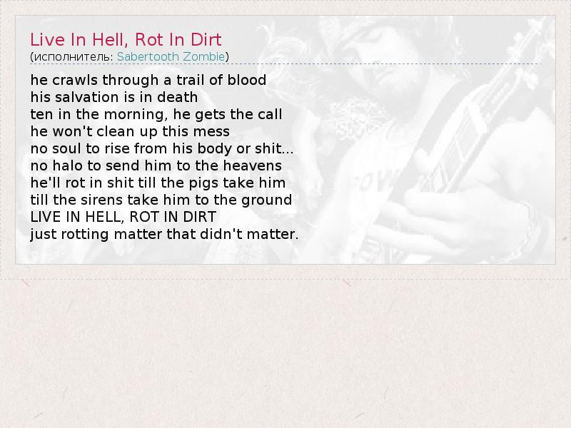 А как ты думаешь, о чем песня "Live In Hell, Rot In Dirt" ?