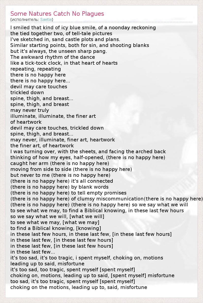ГлавнаяИсполнителиSaetiaSome Natures Catch No Plagues
