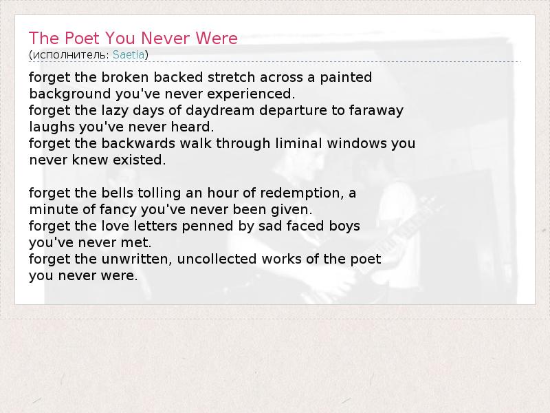 А как ты думаешь, о чем песня "The Poet You Never Were" ?
