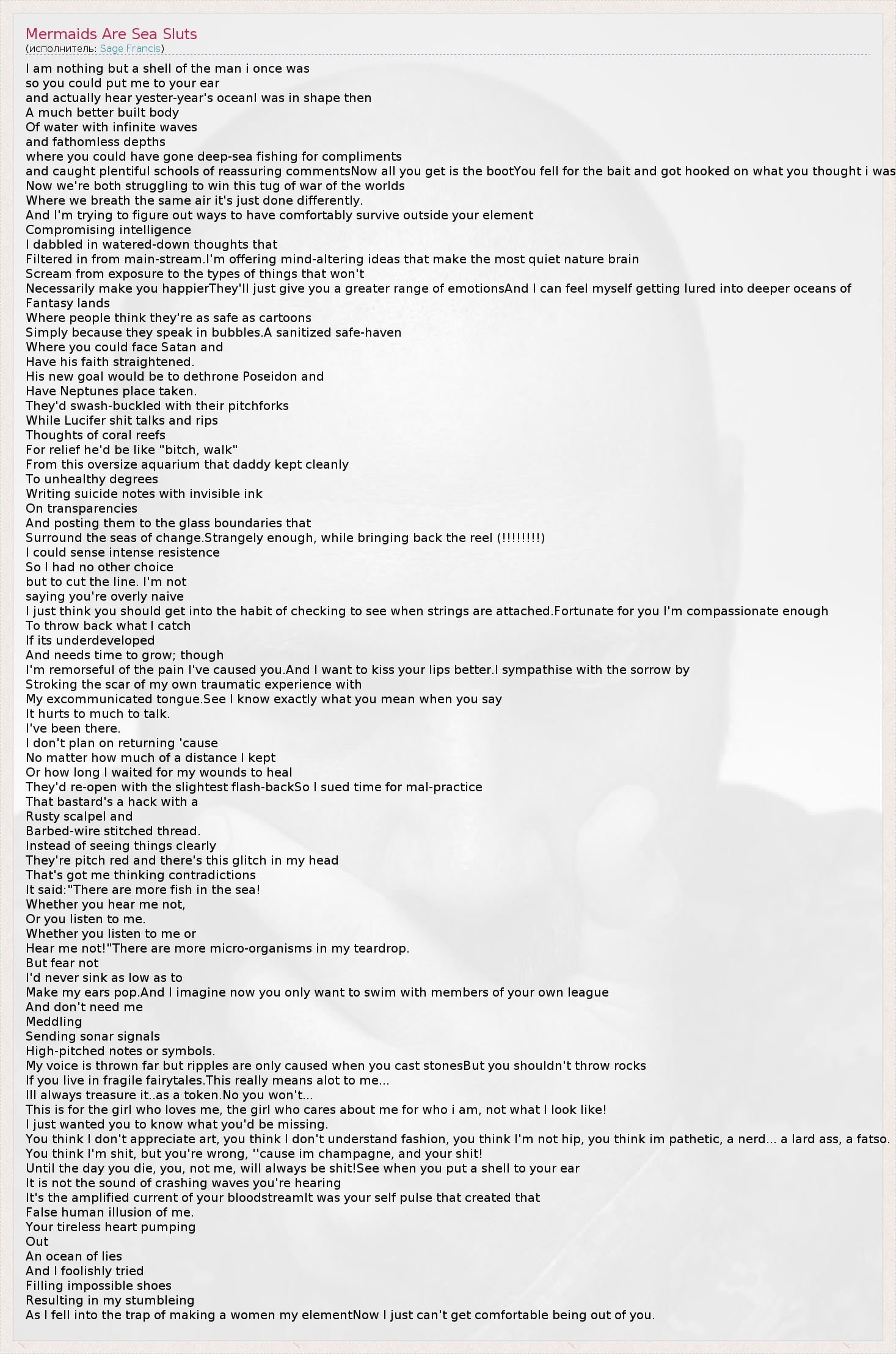 А как ты думаешь, о чем песня "Mermaids Are Sea Sluts" ?