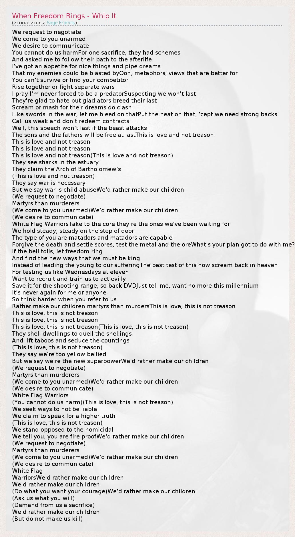 ГлавнаяИсполнителиSage FrancisWhen Freedom Rings - Whip It