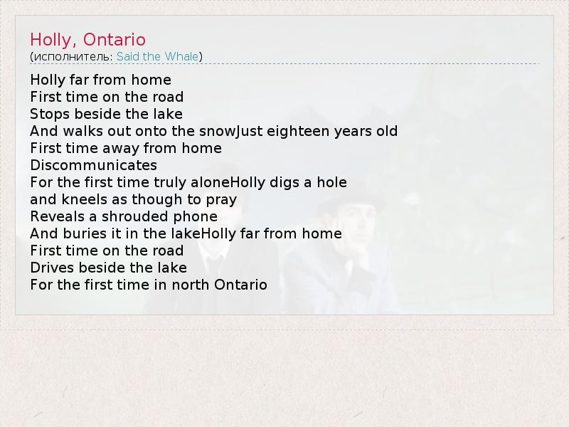 А как ты думаешь, о чем песня "Holly, Ontario" ?