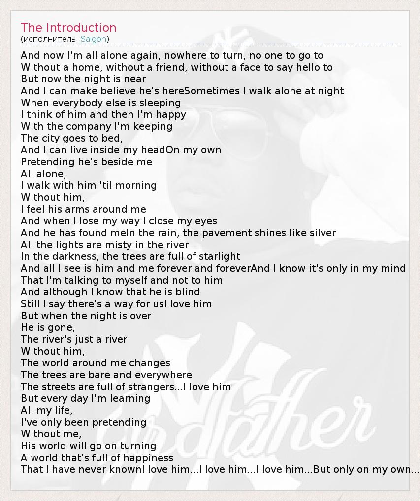 That I have never knownI love him...I love him...I love him...But only on my own...