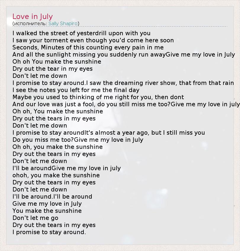 And our love was just a fool, do you still miss me too?Give me my love in july