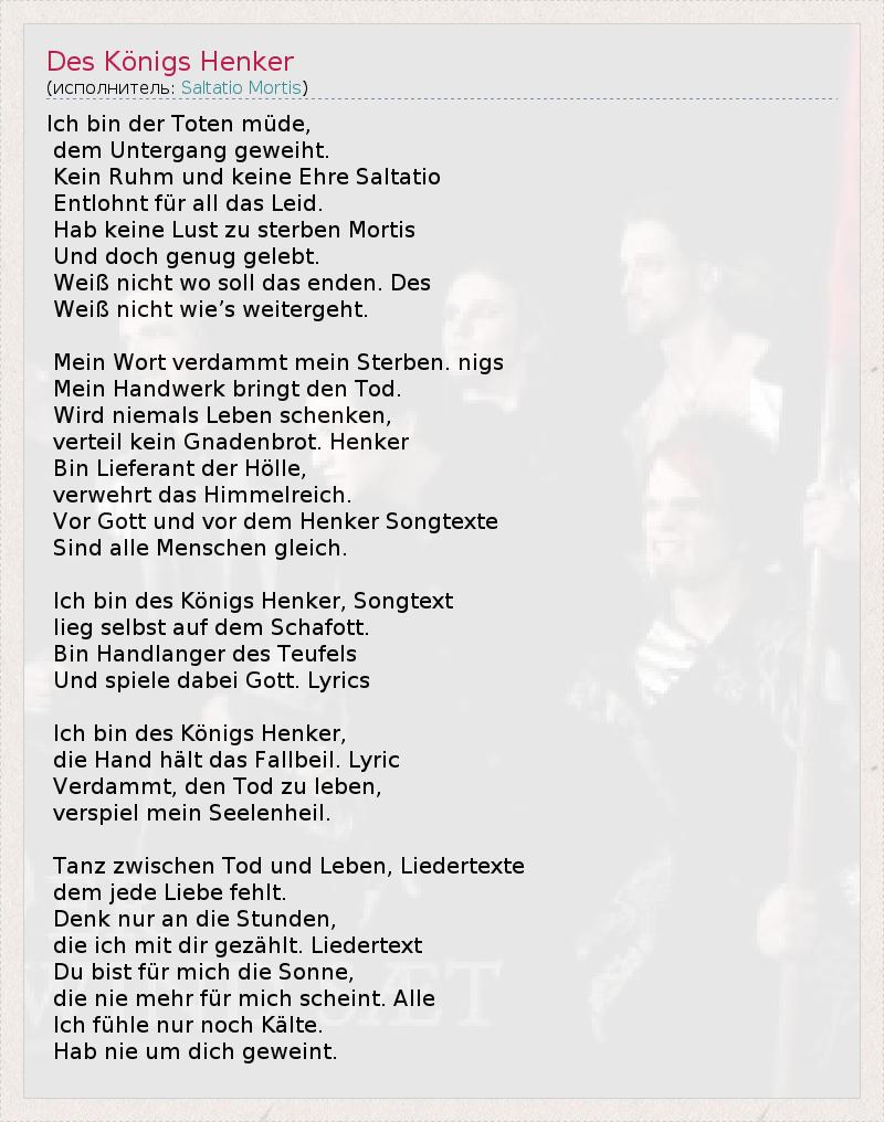 А как ты думаешь, о чем песня "Des Königs Henker" ?