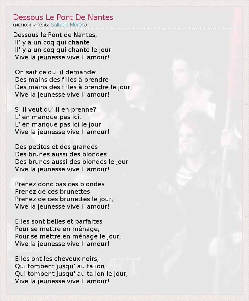 А как ты думаешь, о чем песня "Dessous Le Pont De Nantes" ?