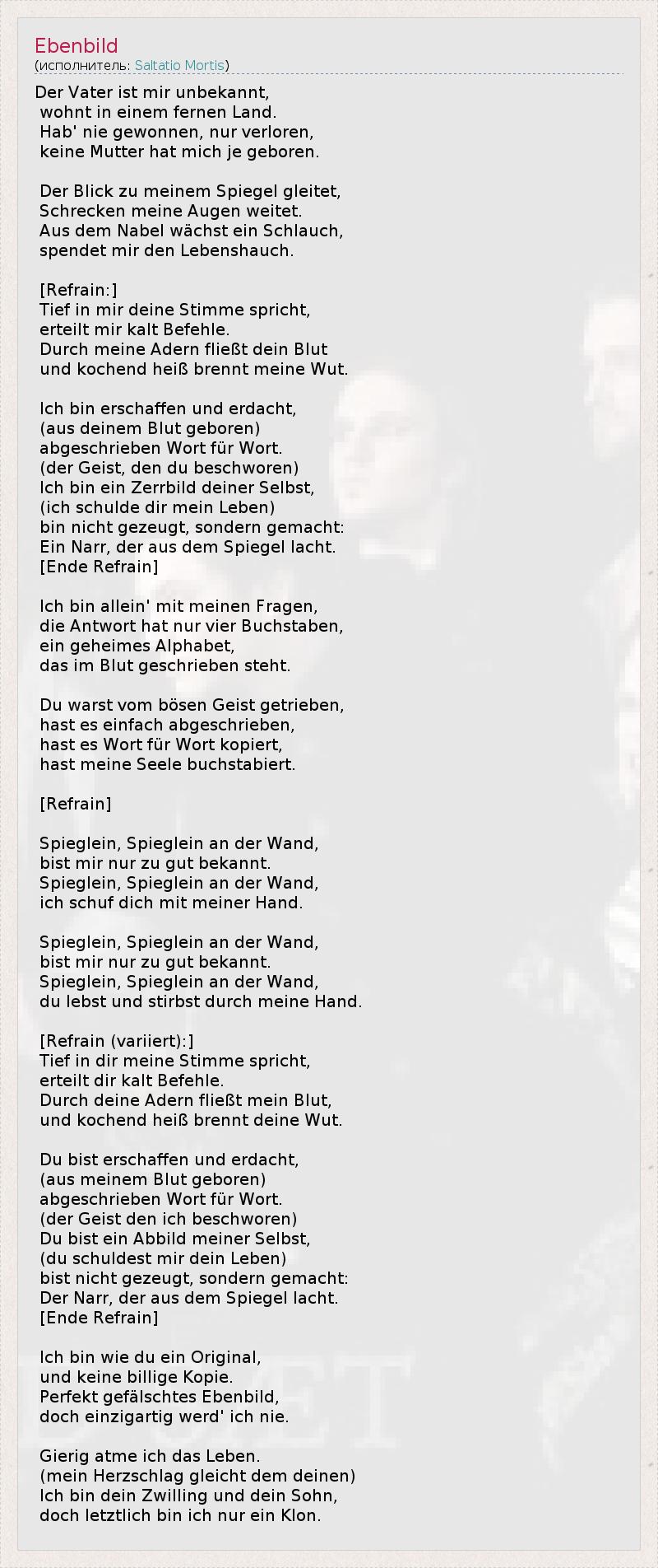 А как ты думаешь, о чем песня "Ebenbild" ?