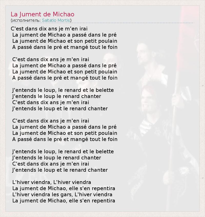 А как ты думаешь, о чем песня "La Jument de Michao" ?