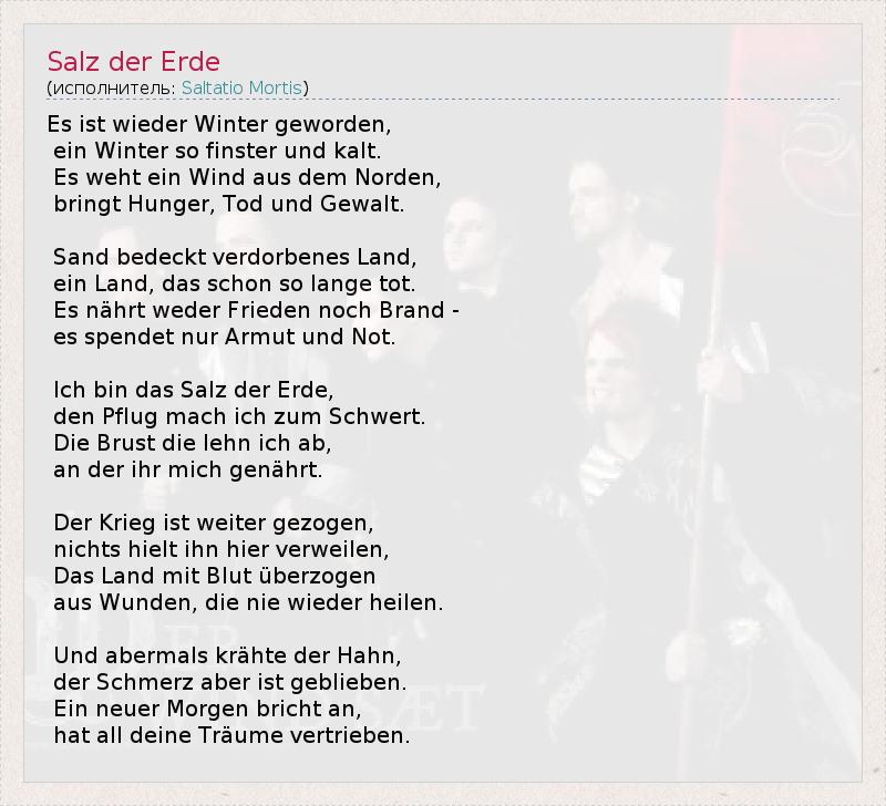 А как ты думаешь, о чем песня "Salz der Erde" ?