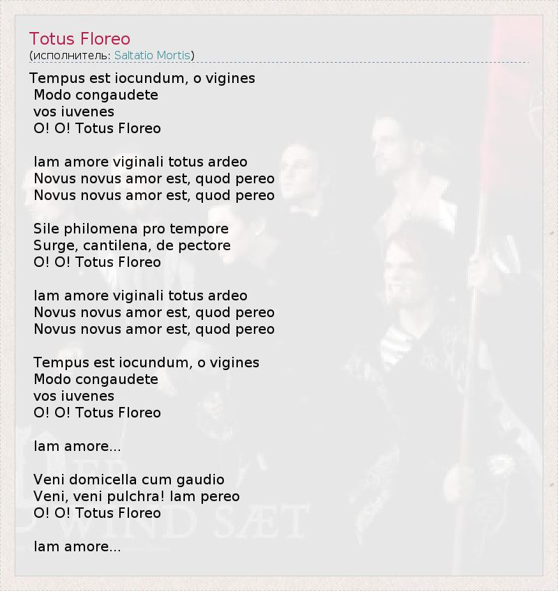 А как ты думаешь, о чем песня "Totus Floreo" ?