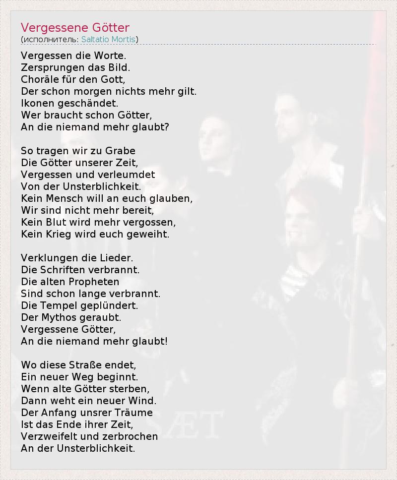 А как ты думаешь, о чем песня "Vergessene Götter" ?