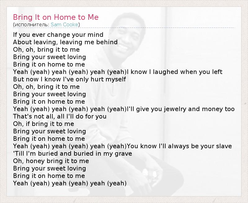 А как ты думаешь, о чем песня "Bring It on Home to Me" ?