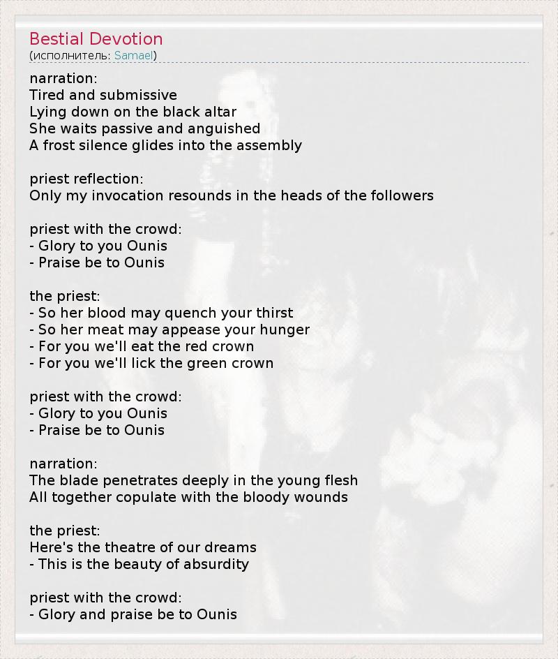 А как ты думаешь, о чем песня "Bestial Devotion" ?