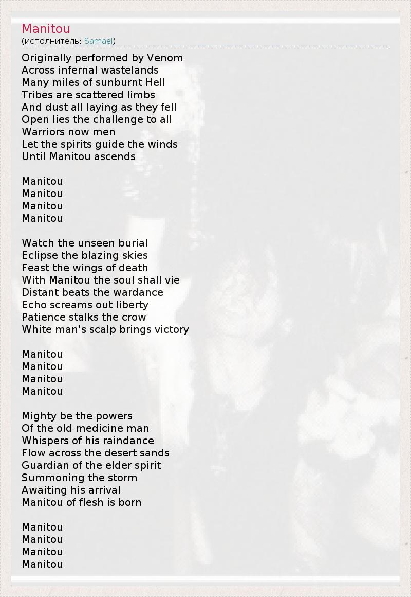 А как ты думаешь, о чем песня "Manitou" ?