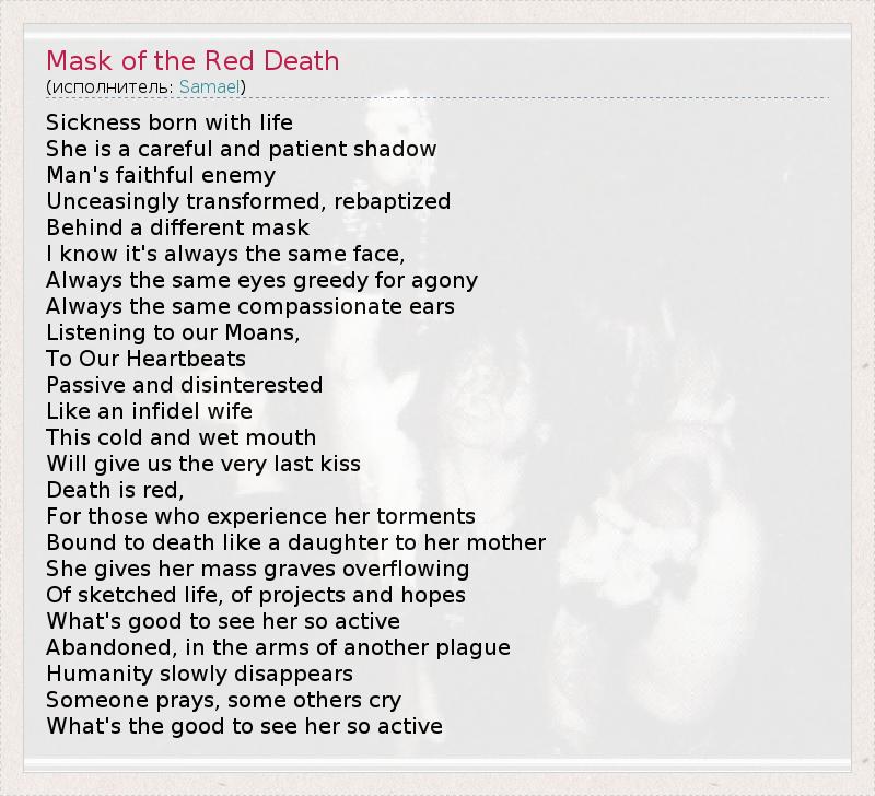А как ты думаешь, о чем песня "Mask of the Red Death" ?