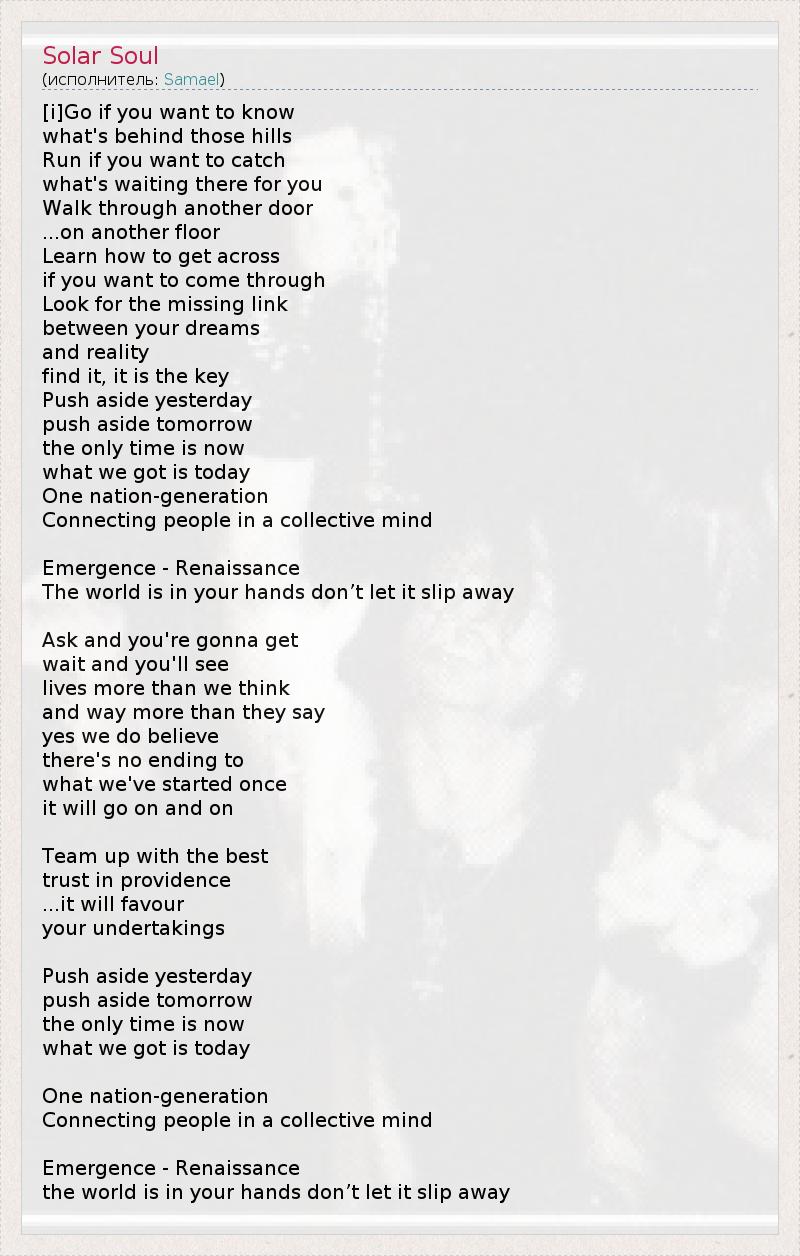 А как ты думаешь, о чем песня "Solar Soul" ?