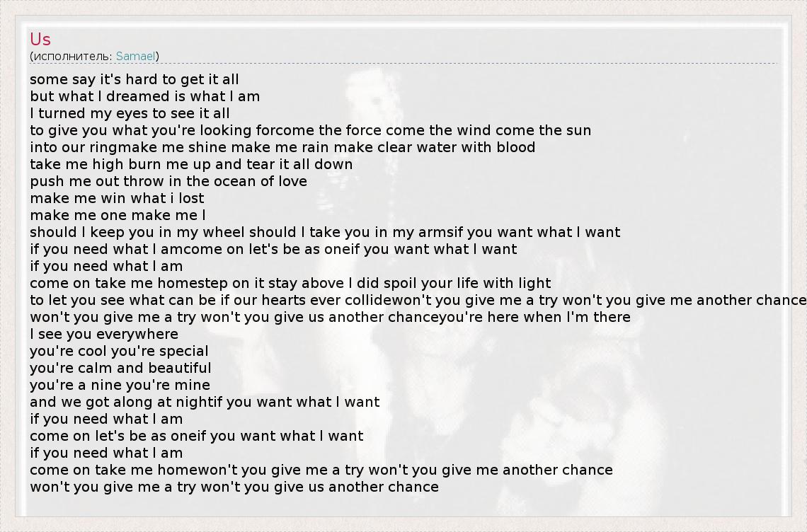 won't you give me a try won't you give us another chanceyou're here when I'm there