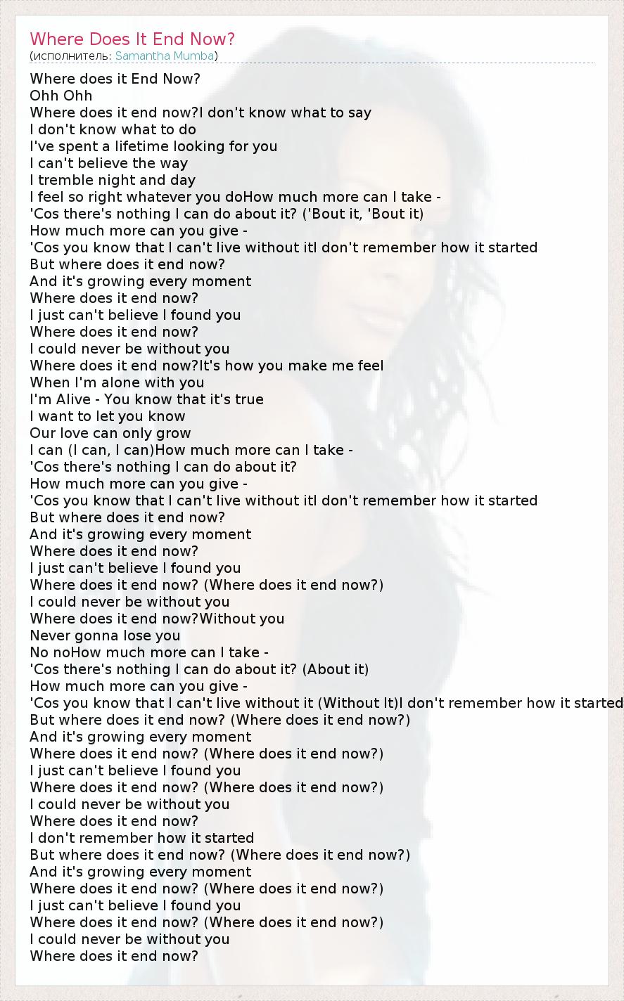 А как ты думаешь, о чем песня "Where Does It End Now?" ?