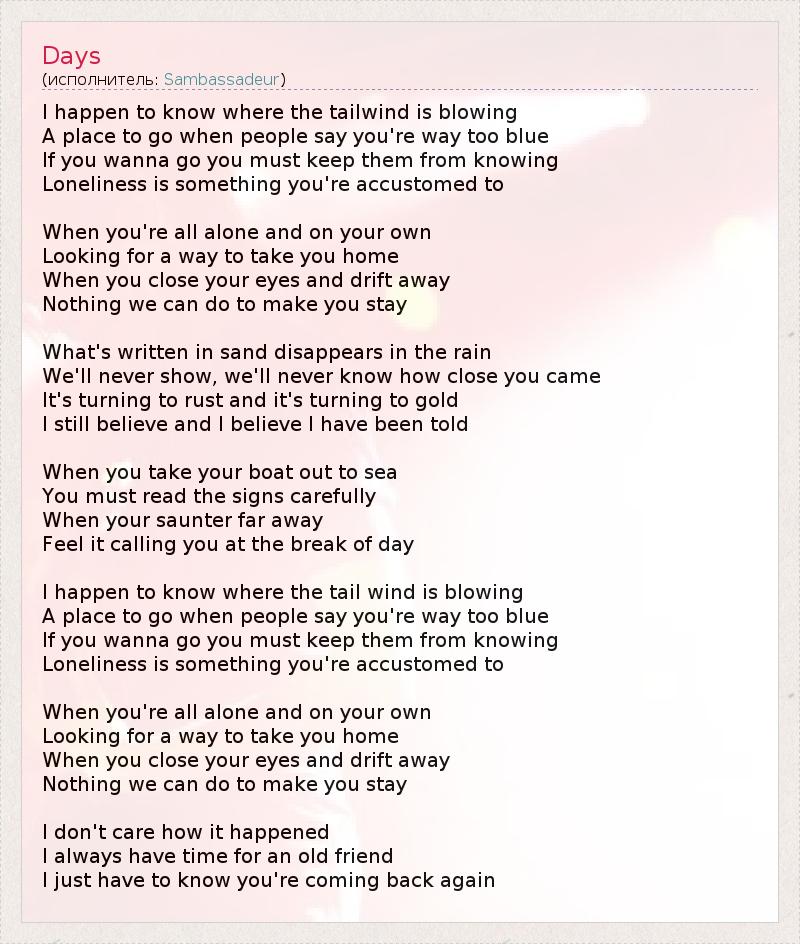 Это интересно:Совершенно замечательный музыкальный коллектив с оригинальным названием SAMBASSADEUR. Родом группа из Швеции. Такое название группа получила благодаря песне Сержа Генсбура (Serge Gainsbourg) – «Les Sambassadeurs». Дискография SAMBASSADEUR насчитывает три альбома: Sambassadeur (LAB071, 1 June 2005)Migration (LAB106, 24 October 2007)European (LAB126, 24 February 2010)Эта скудная информация о коллективе практически всё, что можно найти в сети.... продолжение