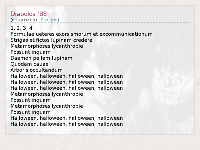 Это интересно:Есть несколько исполнителей с таким названием:1) Samhain — американская horror punk группа Гленна Данзига (Danzig, Misfits).Samhain - Дэзрок / Хоррор панк-группа, сформированная Гленном Данцигом в 1983 году, в то время, как Misfits были в крупных потрясениях и были близки к роспуску. Данциг первоначально планировал Samhain как сайд-проект,... продолжение