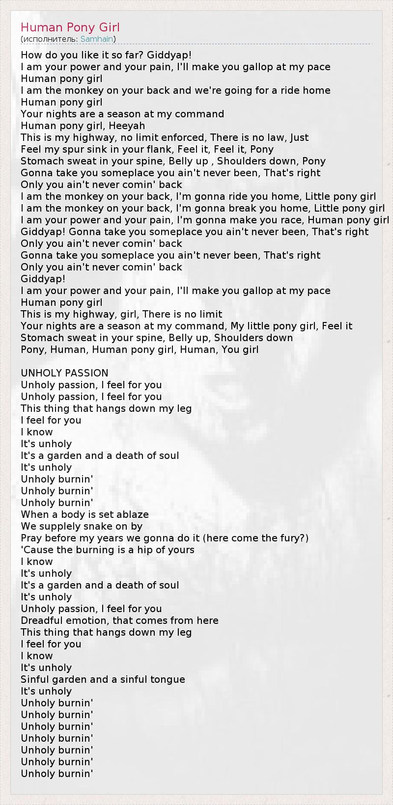 А как ты думаешь, о чем песня "Human Pony Girl" ?