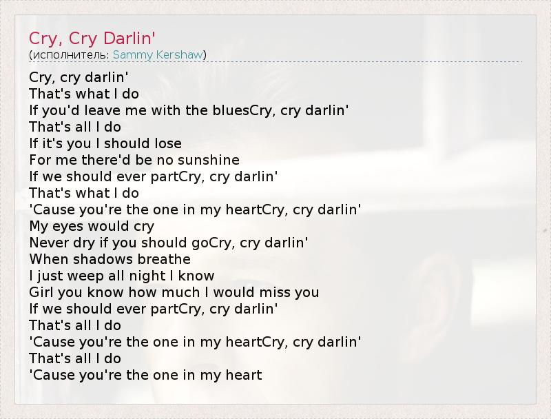 А как ты думаешь, о чем песня "Cry, Cry Darlin'" ?