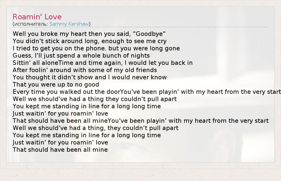 А как ты думаешь, о чем песня "Roamin' Love" ?