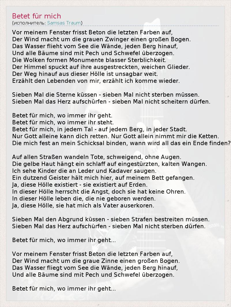 А как ты думаешь, о чем песня "Betet für mich" ?