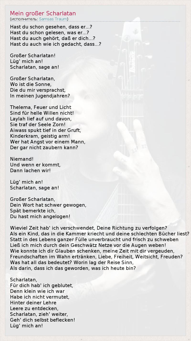 А как ты думаешь, о чем песня "Mein großer Scharlatan" ?