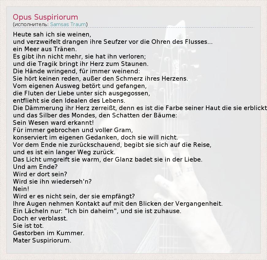 А как ты думаешь, о чем песня "Opus Suspiriorum" ?