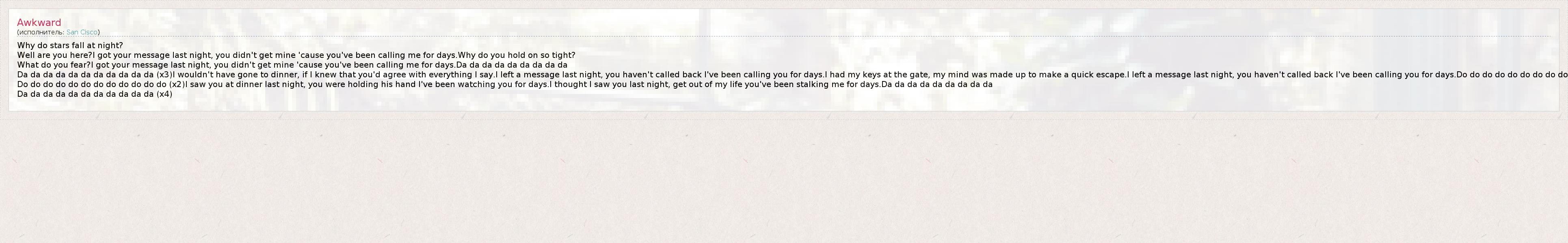 What do you fear?I got your message last night, you didn't get mine 'cause you've been calling me for days.Da da da da da da da da da