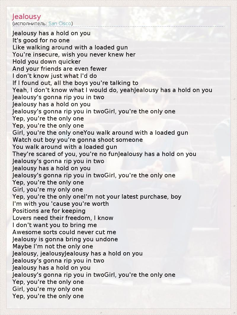 Jealousy, jealousyJealousy has a hold on you