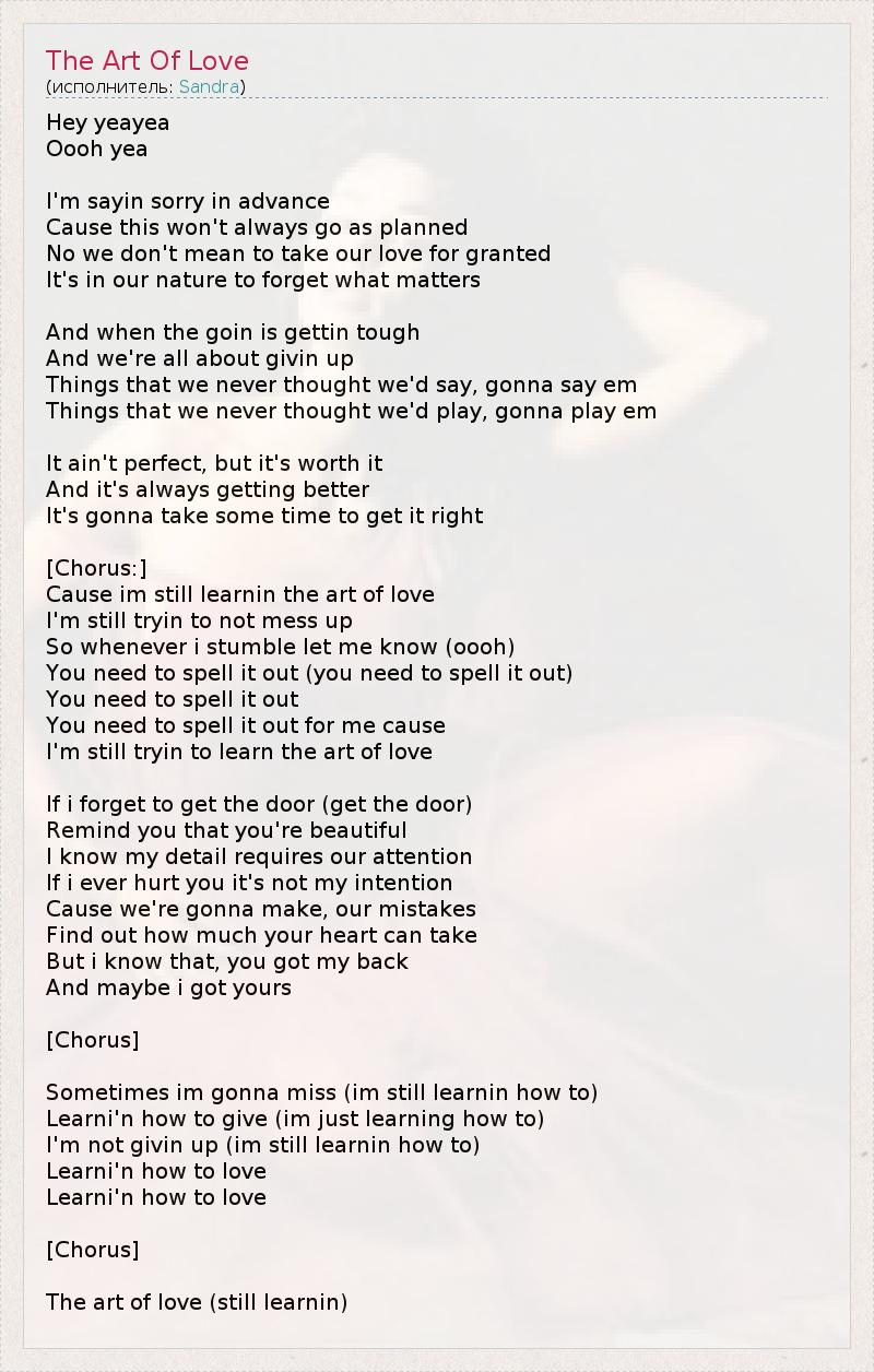 А как ты думаешь, о чем песня "The Art Of Love" ?