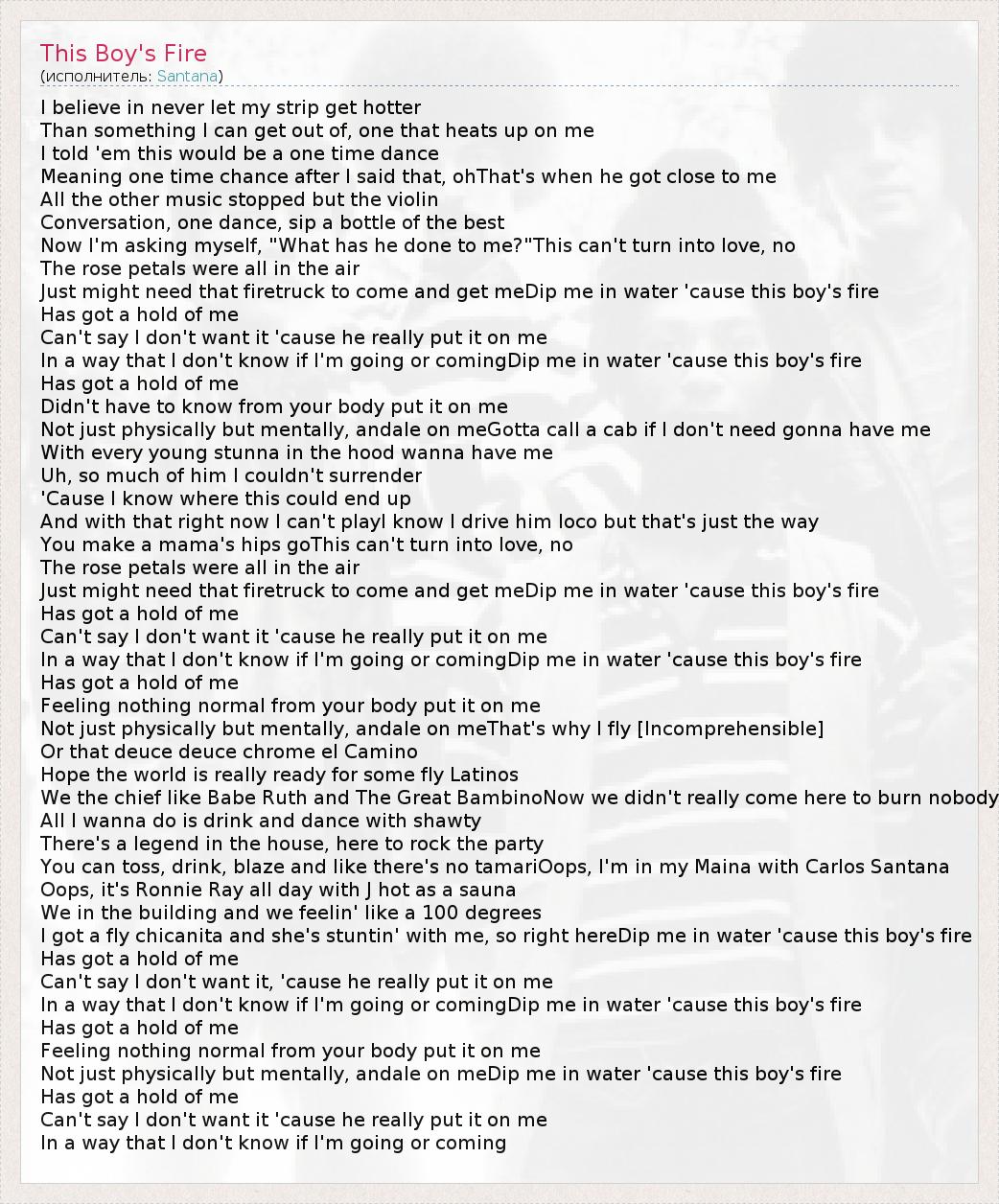 А как ты думаешь, о чем песня "This Boy's Fire" ?