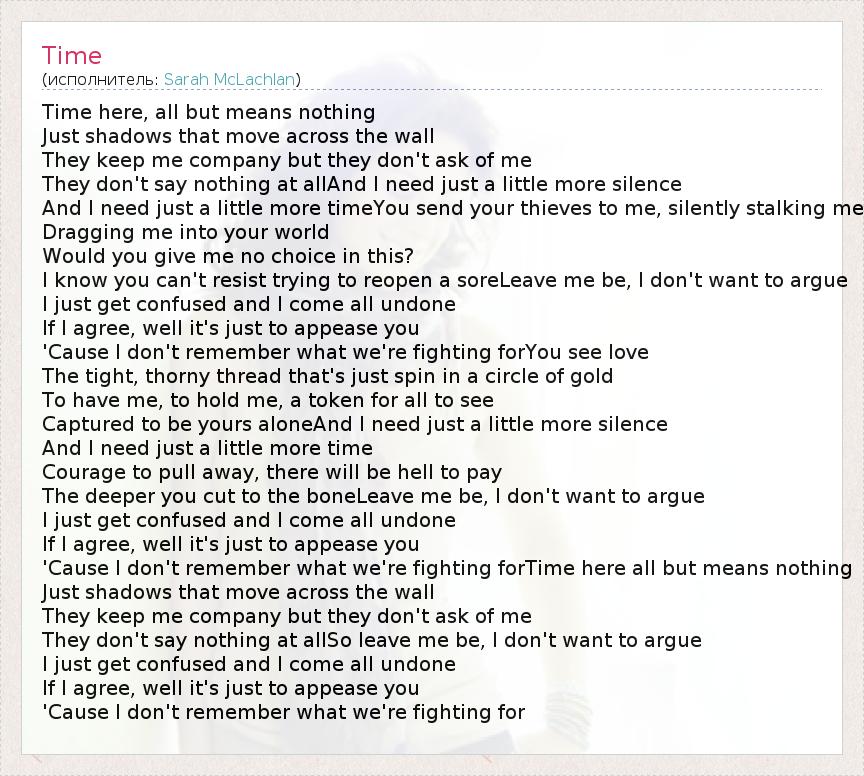 'Cause I don't remember what we're fighting forTime here all but means nothing