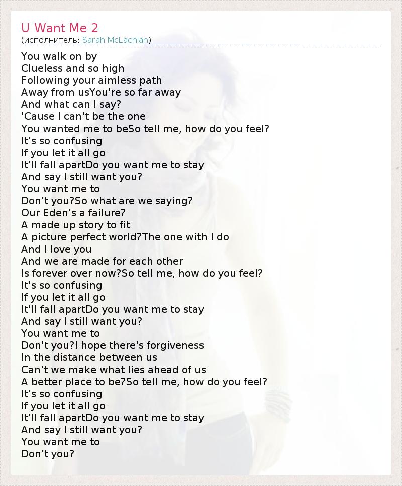 А как ты думаешь, о чем песня "U Want Me 2" ?